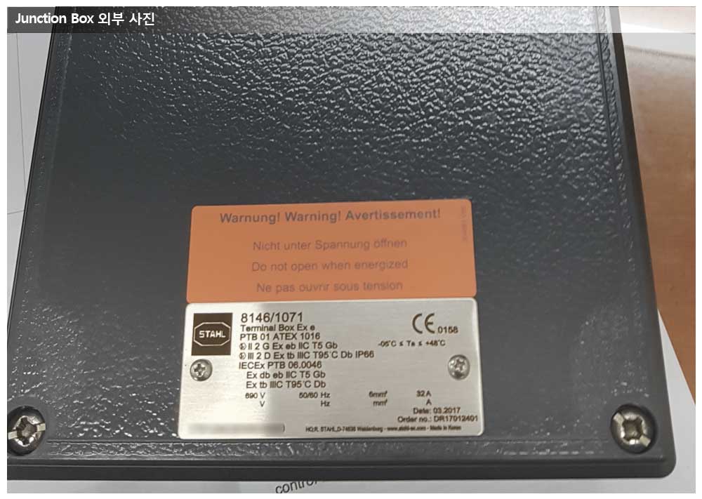 현대중공업, NASR프로젝트, R.STAHL사 Junction Box 페이지 정보 작성자 관리자 작성일17-04-24 14:55 조회19,231회 댓글0건 관련링크 이전글 다음글 목록 본문 공급품목 : R.STAHL JUNCTION BOX 상세사양 : 8146/1041, 8146/1051, 8146/1071 모델 특이 사항 : R.STAHL 의 국내 Workshop에서 가공하여 납기가 종전보다 4~6주정도 단축되었습니다. 댓글목록 등록된 댓글이 없습니다. 이전글 다음글 목록